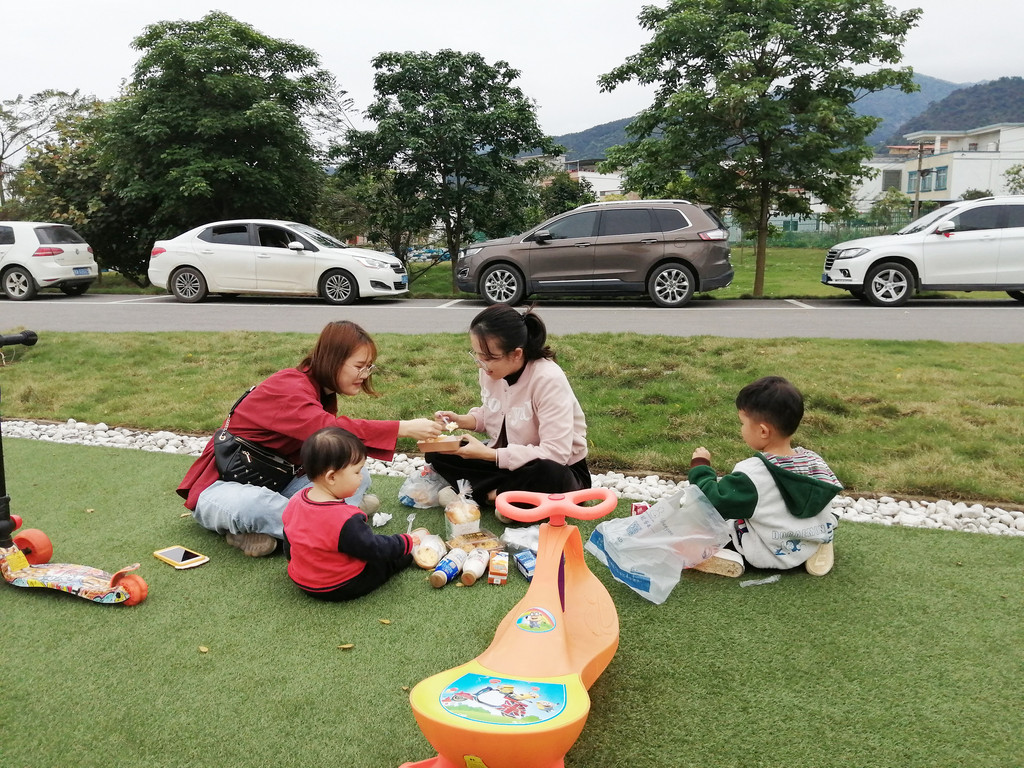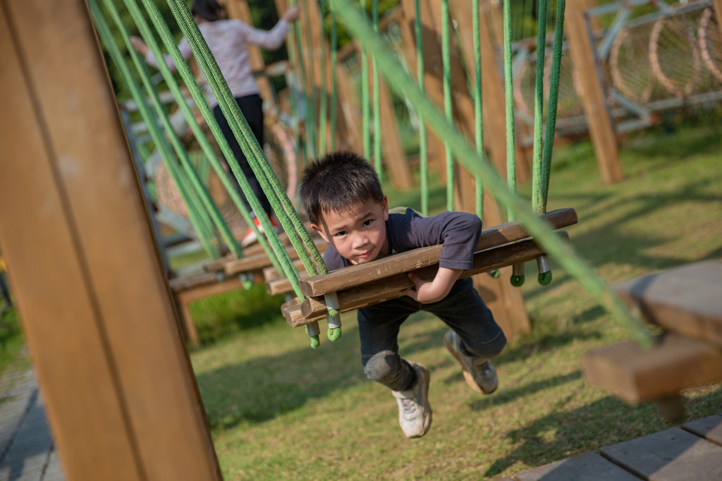崽,大胆点咧,看人家小妹妹,走得飞起,怕什么咧!妈妈在一边嫌弃,一边鼓励