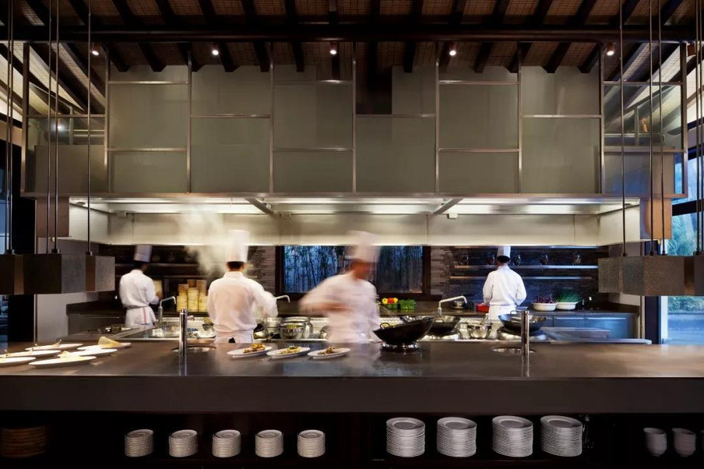 大别墅外的露天场地,三面竹林秘境环绕,夜晚8点开始酒店还会专门为客人准备自助宵夜。