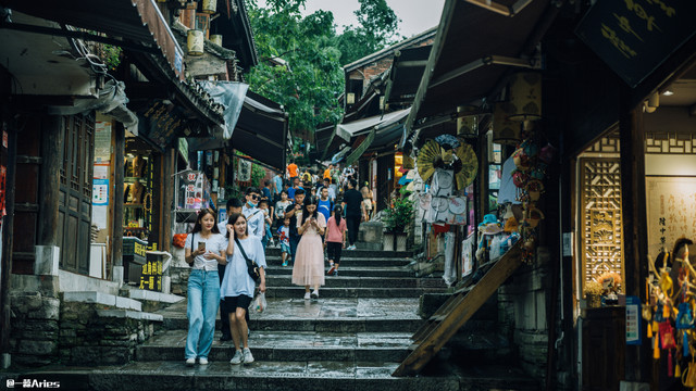 十年前的青岩古镇,还不能算一个成熟的景区,十年后重返,镇还是那个镇,氛围已经大变。从外圈就被圈起来,商业街也修的有声有色。