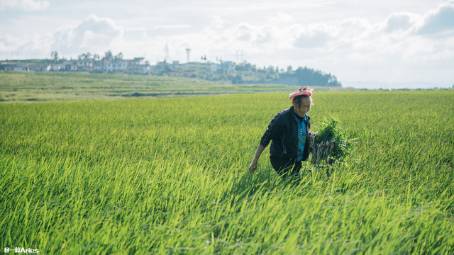 光屁股的小朋友穿着雨靴在田边玩水,远处阿婆正在田间劳作,见我们过来抬头微笑着招呼一声,这朴实的生活画面,这是夏天最真实的写照。