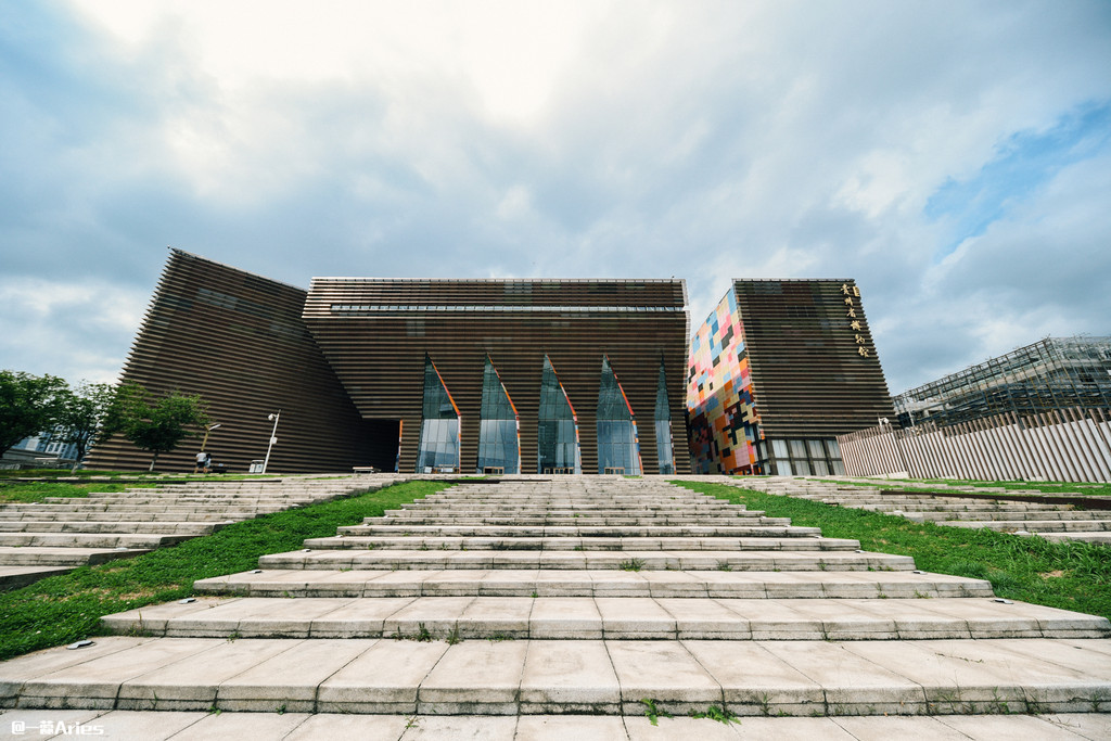 博物馆大楼汲取了侗寨鼓楼轮廓的神韵,由六个“山”字形的面构成,外观极其低调,内部大有天地。
