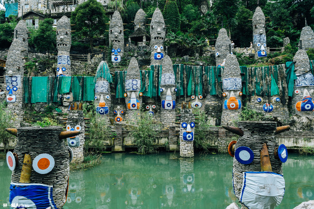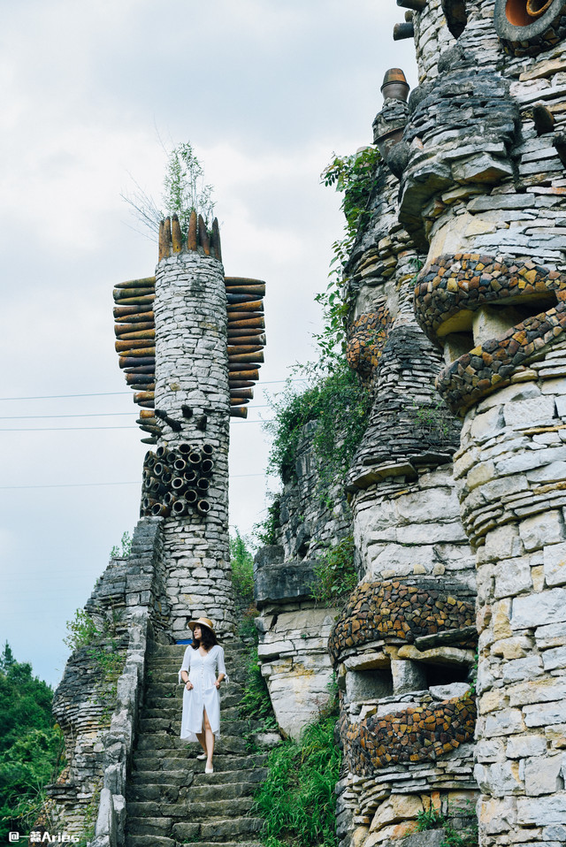 一位仙风道骨的老人,从1997年开始,用简单的石块、碎瓦、花盆和泡菜坛子等材料在青岩古镇附近一个小山谷里建成了一座奇幻城堡。