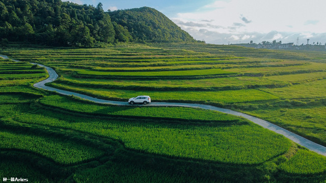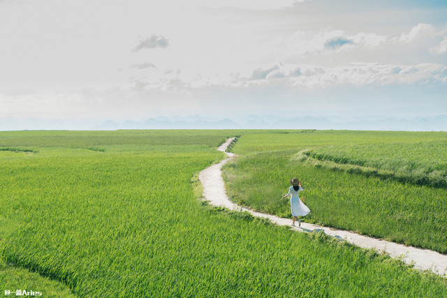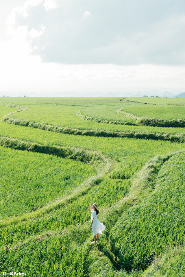 爬上观景台,当阳光从云后洒在随风涌来的稻田波浪之上,无数条田埂纵横交错,没有任何修饰,仅是那片沁人心脾的绿就足够让你感动。