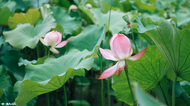 沿着曲折的荷塘小道,优雅的粉,洁净的白,镶嵌在碧绿的荷叶之上。