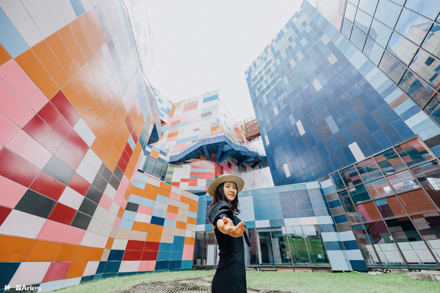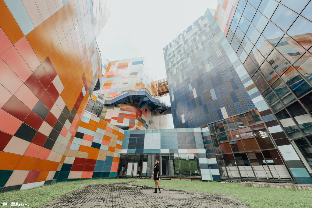 五彩缤纷大楼内部,空间大细节足,行走其间仿佛进入了一个魔方世界,满足拍照的各种要素。