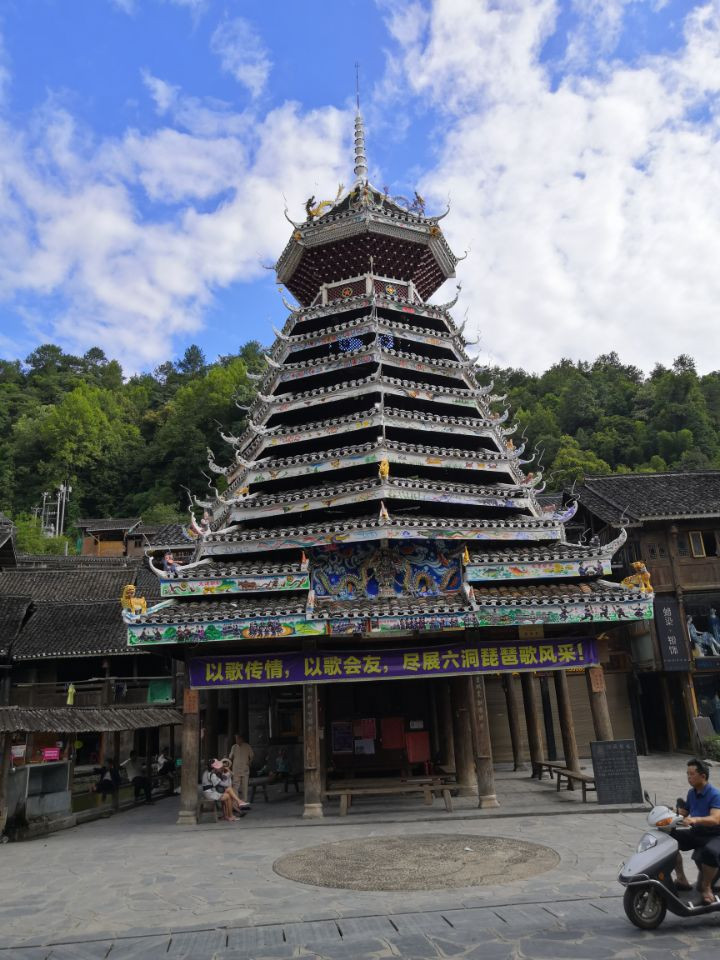 酒店位于下寨,老板把我们送到中寨核心景区,在一凉亭上,有个女的叫卖到堂安梯田的观光车,来回程要20元。买过票后,她用电话叫总部来了一辆电瓶车,把我们送到观光车的上车点,服务还是可以的。上车点应该是上寨,出了核心景区。坐了半个多小时的车,车在山路中走,而且是盘山路,自驾的得小心。终于到了半山的堂安侗寨。