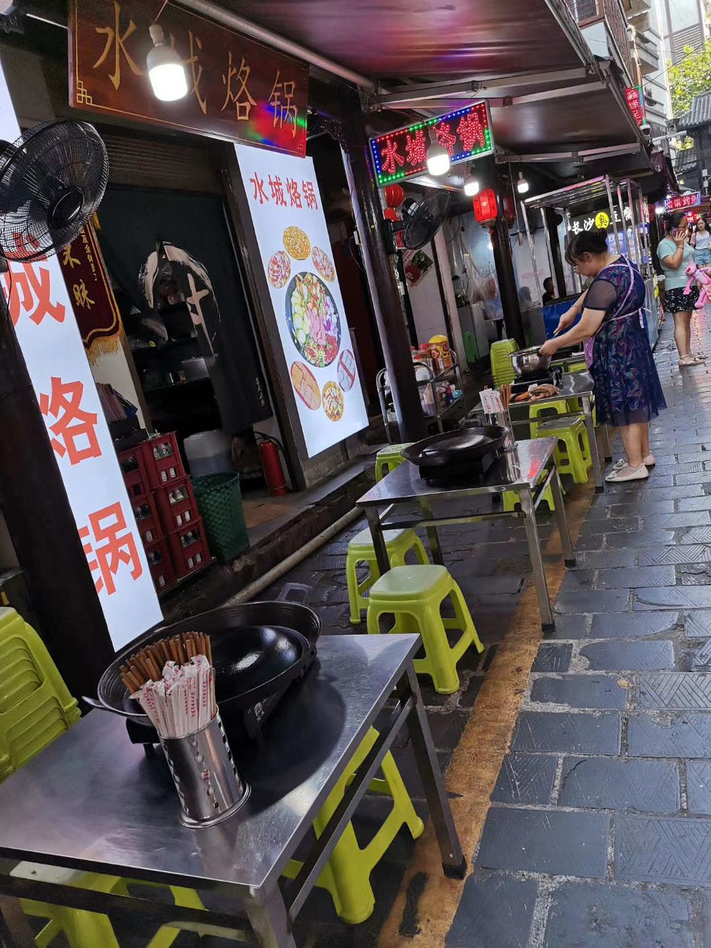在古镇的边上有一条美食街,六盘水的特色--烙锅在这里是最正宗的。