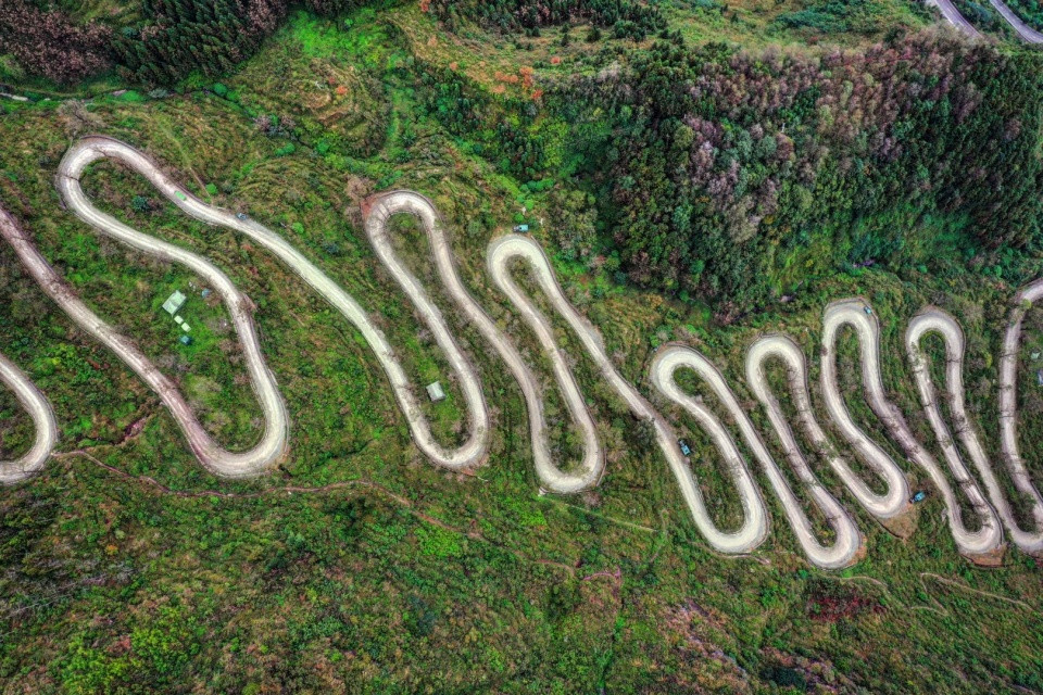 熟悉历史的人都知道,在二战时期,美国的援华物资想要送达前线,都必须经过滇缅公路到达昆明后,再经由滇黔线路过贵州才能实现,当时云南和贵州的交通情况可不像现在这样四通八达,而只有一条位于晴隆的险峻山路联通,日军自然不会放过此处,多次派飞机进行轰炸。为了保证公路畅通,美军公路工程部队1880工兵营在当地群众的配合下对滇黔线进行维修,当时一共只有不足五万人口的晴隆县城,上前线的人数竟多达3800余人,就是为了保证物资的顺利送达,这条路也就成了我国抗日战争大后方唯一的陆路运输线及国际援华物资的大动脉,被誉为“中国抗战的生命线”,这便是有着“历史的弯道”之称的晴隆二十四拐。