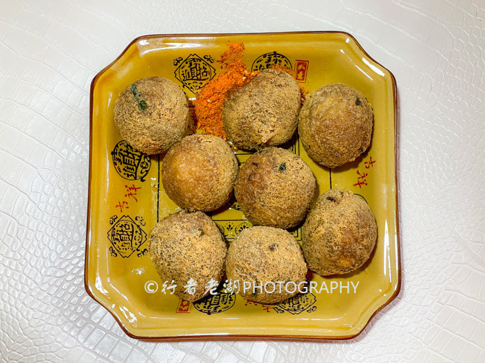 他家的豆腐果类似贵州雷家豆腐丸子,很像小时候吃的油炸豆腐泡,只不过我们吃的是方形,青岩古镇的是圆形,但外面有裹了一层面粉,油炸之后好脆。咬开松脆的皮,里面是非常松软的豆腐,尝试蘸着贵州辣椒粉,并不辣,咸味足,带着各种调料的香,满嘴的脆爽。