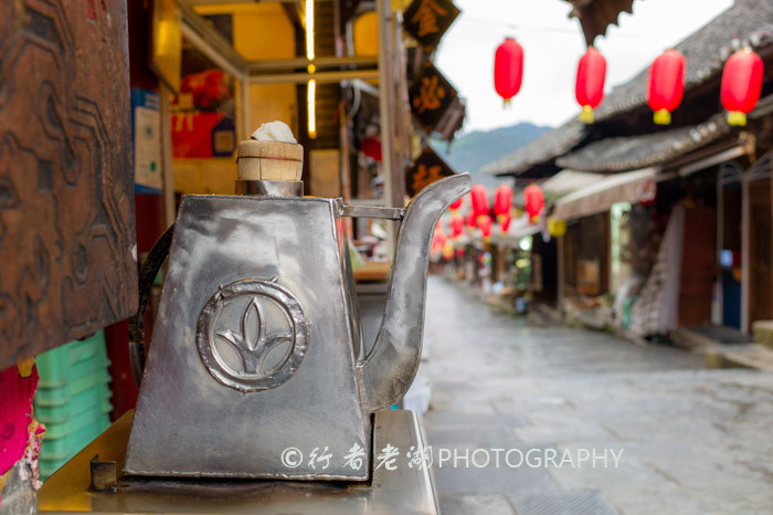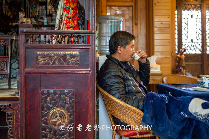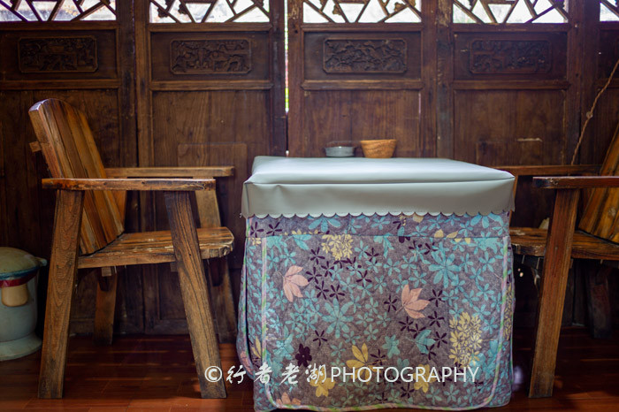 围着床和椅子拍了好一阵,餐馆也没了客人,老板喊我一起喝茶,围着火炉聊青岩古镇,旅行中没有比这更开心的事了。老板姓吴,祖辈都住在青岩古镇,在镇上做布匹和食盐生意,家族生意昌盛的时候,青岩古镇西街的大部分房屋都是他们吴氏家族的。后来房屋被没收,经过一段艰苦的日子,返还了目前的小房子给他们居住,楼下以及后面房子住的也是他家亲戚。