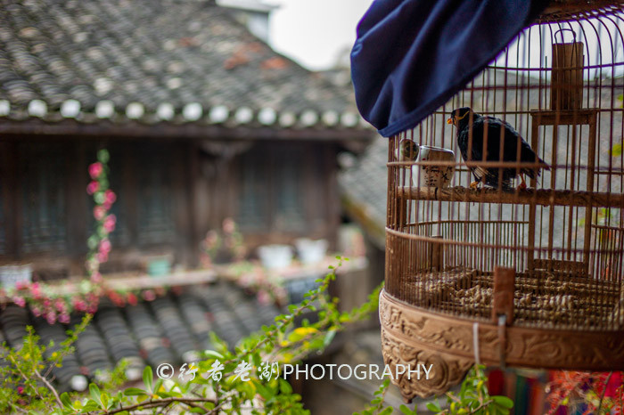 吃了饭,并不想离开暖和的小餐馆,突然听见屋外像是鹦鹉吹口哨。老板说是他们家的鹩哥,比鹦鹉会说话,能说贵州方言,每天天刚亮,它就用贵州话喊着“老板开门啰!”天黑的时候,它就叫着“老板关门啰!” 打开窗户,看到了鸟笼里的鹩哥,鹩哥见我拍它,竟然用普通话说了一句“朋友”,我对它说“你好!”鹩哥吹了一个响亮的口哨,然后还回我一句“你好!”