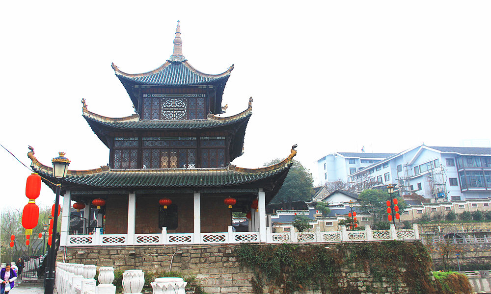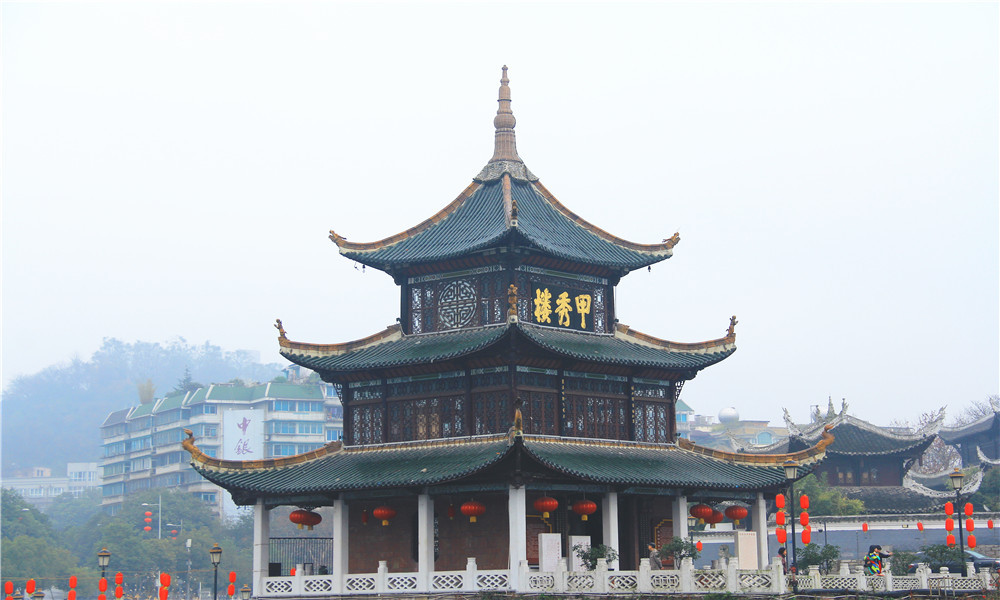 甲秀楼始建于明,后楼毁重建,改名来凤阁。