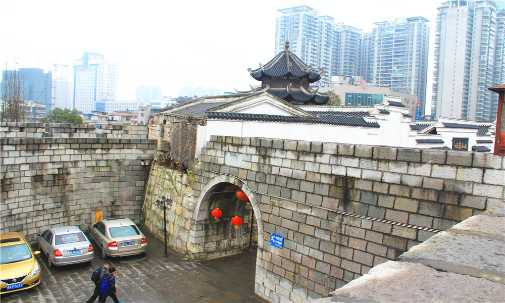 明洪武十五年(1382年),贵阳历史上第一次修建了石质城墙,之前元代顺元城只有夯土城墙。这道城墙共设立了五座城门,史称贵阳内城。