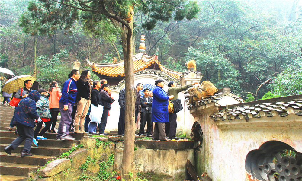 黔灵山公园幽静的山谷里建有动物园,清泉怪石,随处可见,有成群的灵猴和鸟类在此栖息,山上还保存有第四纪冰川期遗迹。