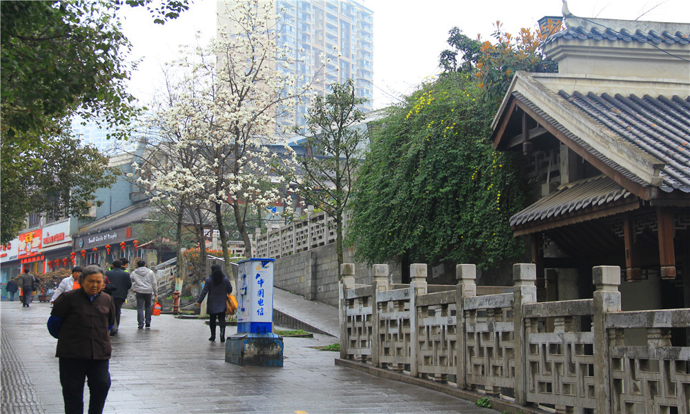 (清)王覆升《春日同人集饮文昌阁看桃李》一诗写道:花气袭衣裙,晴光透林壑。郊原浮青葱,桃李遍城郭。描绘的就是东门的美好景色。