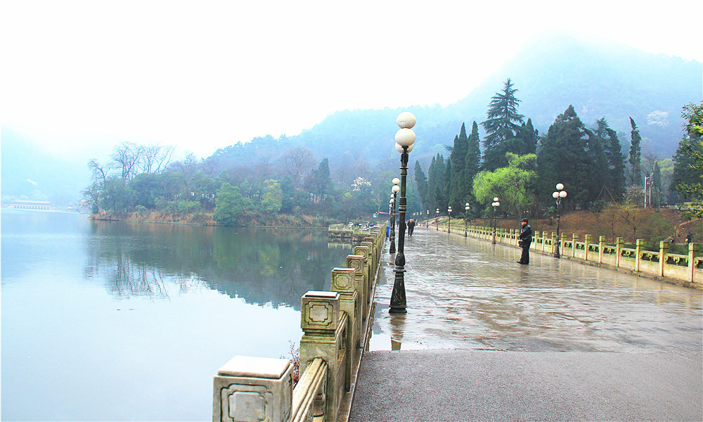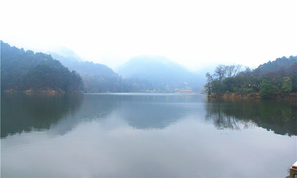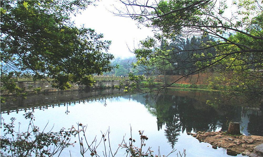 黔灵湖,湖面如镜,时不时有几条调皮的小鱼跳出水面,游船静静的在水面上游走。