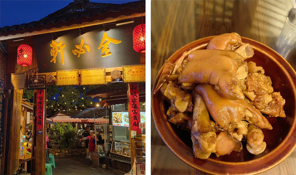 而青岩古镇的猪蹄又是另一番美味,古镇北门里的金必轩,猪蹄堆成了小山,而转眼间又销售一空。软糯的猪蹄,咬一口唇齿留香。趁热吃,香糯而又不油腻。