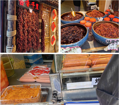 但,辣椒才是这一方水土真正的灵魂所在。遍布大街小巷的辣椒制品店铺和各式各样的辣子小菜自不必多言,就连吃根烤肠也要撒上一层厚厚的辣椒面才叫够味。