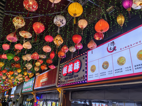 看完《多彩贵州风》演出大概晚上9点,如果还不想回酒店睡下,那就去夜市逛逛咯。从剧院出来,过市南路和新华路交口的地下通道,青云路出口出,前行大概400米就是青云市集了。晚上的青云市集熙熙攘攘、热闹的很,各种吃的玩的应有尽有。一边吃,一边玩,一边感受贵阳这个城市的活力。