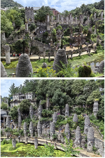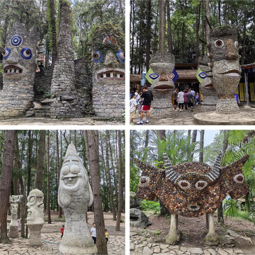 夜郎之名来自于古夜郎国,世人熟知的成语“夜郎自大”即出自古夜郎国。而夜郎谷则是艺术家宋培伦老人历时20年带领工匠们建造的他心中的艺术乌托邦。宋培伦老人在峡谷中,依山势,就地取材,使用石块、陶罐、木头等建立数十尊夜郎人雕塑。置身其中,确实被这些艺术精品所震撼,更被艺术家的执著所震撼。