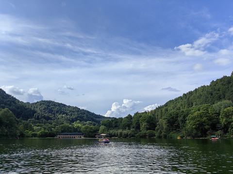 黔灵湖泛舟,船分手划船和脚踏船两种,价格都很便宜,手划船15元/小时,脚踏船30元/小时,押金都是每船100元。从黔灵湖茶餐厅走过去,先看到的是手划船码头,沿着岸边继续往里走是脚踏船码头。对于不太会划船或者嫌累的,果断选择脚踏船准没错。泛舟湖上,既可以赏无敌景致,也可以靠到西侧湖边,看小猴玩耍。记得带点零食面包啥的喂猴子。