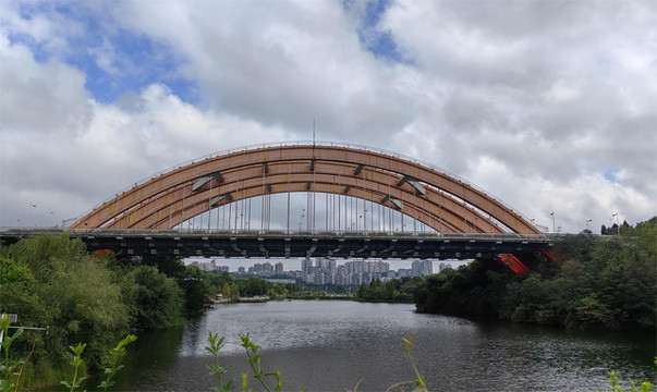 观山湖公园位于贵阳市区西北侧,观山大桥的南北两侧,观山大桥以高架的形式从公园中心穿过,因是高架,所以对下面公园的影响有限。大桥两侧分布着两个湖,北侧的观山湖和南侧的金华湖,围绕两个湖四周绿树成荫,建有绿道。