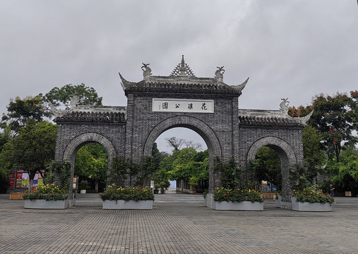 花溪公园雏形始于1787年(清朝乾隆年间),由当地举人周奎父子营造。1937年开始作为公园建设,1940年基本落成。当时为落实建设费用,公园名“中正”,时称“中正公园”。新中国成立后,正式改名“花溪公园”。