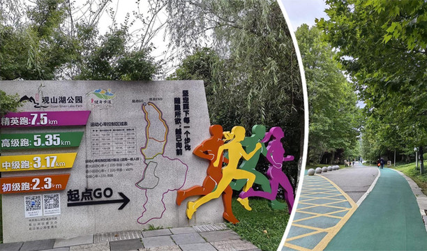 观山湖公园对跑步爱好者非常友好,公园入口有很清晰的跑道规划,塑胶跑道也比较宽,足够两个人并排跑,中途距离提示牌也很好。重要的是,加上贵阳这无敌的夏日凉爽天气,必须跑起来。