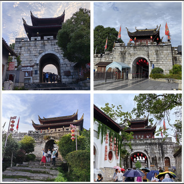 古镇设东西南北四门,对应东明清街、西明清街、南街、北街四条主干道在古镇中心交汇。南北两街将古镇分为东西两部分,东侧主要是当地村庄,没什么景点,可不必游玩。只在西边一侧游玩即可。