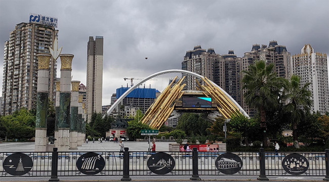 民族博物馆旁是筑城广场,贵阳地标,广场中央是巨大的“筑韵”主题雕塑,由8个巨大芦笙组成。“筑韵”的整体造型为竹子,代表了贵阳的竹文化。