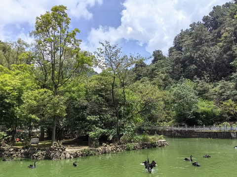 其实黔灵山还是可以近距离观看猴子或者喂食的,个人经验,主要在两个地方,都在黔灵湖旁。猴子主要在黔灵湖西侧的树林里活动,所以一是可以从公园西门进入,沿着靠近黔灵湖西侧的路,会看到很多猴子,而且这些猴子会靠近你要吃的哟。还有就是泛舟湖上,靠到西侧湖边,也能看到很多猴子在树林里上蹿下跳。