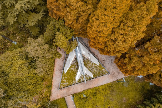 关于拍照,这里的中心区域有一架退役战斗机是亮点,航拍十分好看!当然这里的园林设计有很多规则的图案,也十分便于航拍取景的构图。
