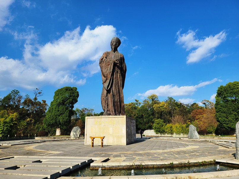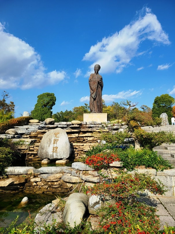 下午两点左右即到达修文县。很幸运,遇到了一个蓝天白云的晴朗天气。在酒店放下行李,即前往参观王阳明龙场悟道的阳明洞所在地—中国阳明文化园。