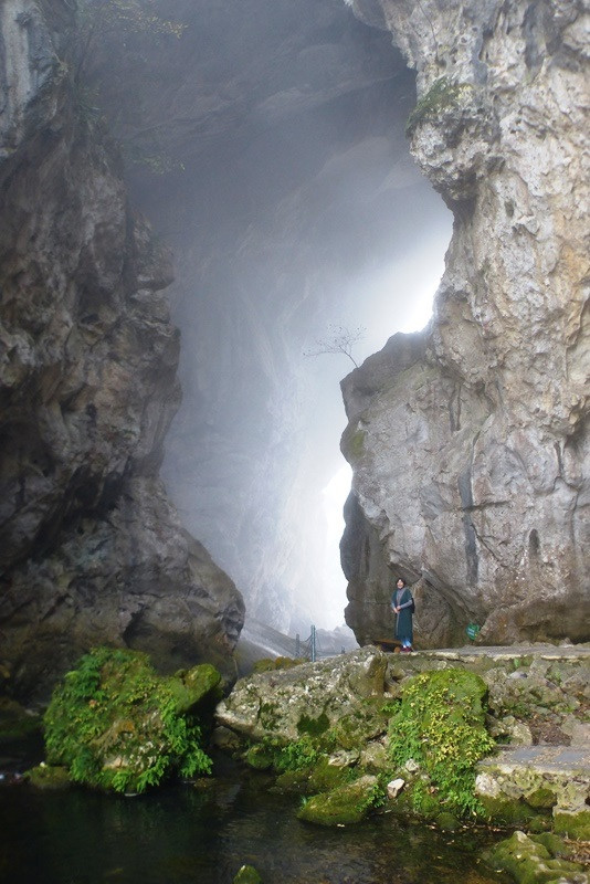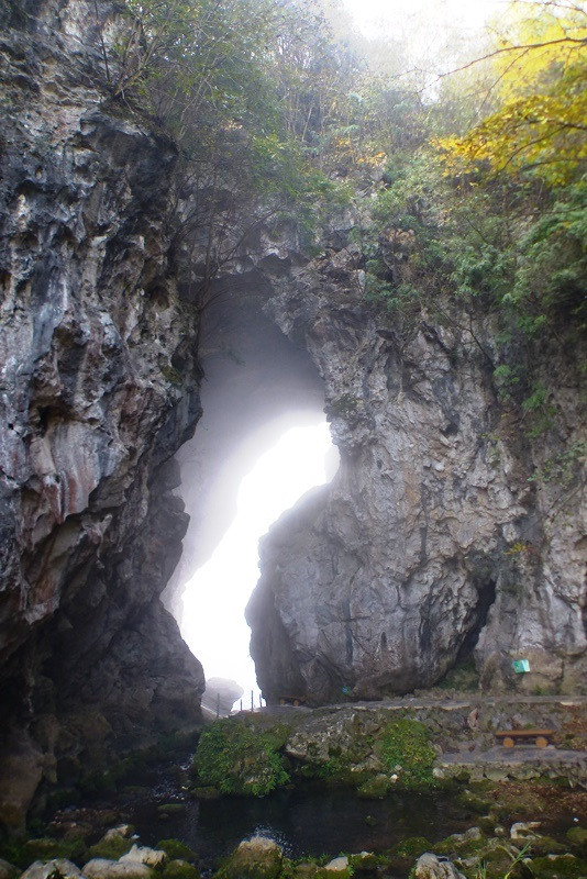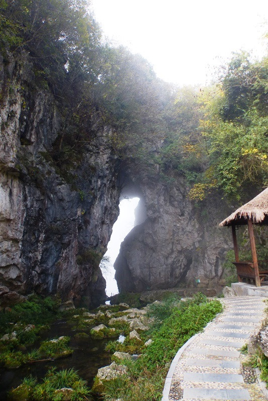 从三人坟继续前行约十分钟,就是王阳明曾经游历过的风景点—天生桥,依照公路上的指示牌前行即可,用手机导航不靠谱,手机导航会引导你前往几十千米外的天生桥。像贵州这种喀斯特地貌很多的省份,类似天生桥的自然景观很多。但这座天生桥则因为王阳明曾经游览并留下诗作而添加了历史和文学的色彩。
