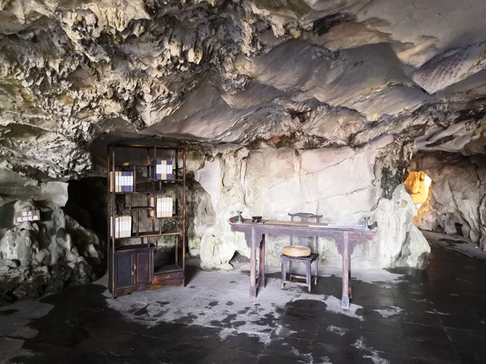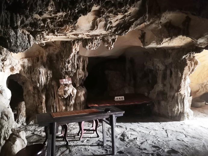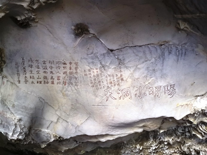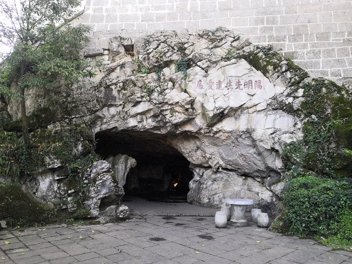 到龙场后,驿站早已破败,不能居住,王守仁则暂居小孤山溶洞,此溶洞即“阳明洞”。