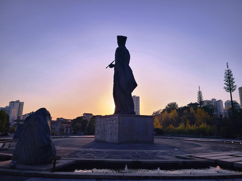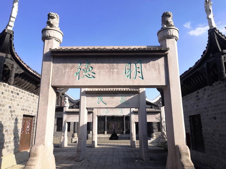 阳明文化园门口矗立着八个巨大的石柱,一边四个,代表阳明学派的八个分支学派。