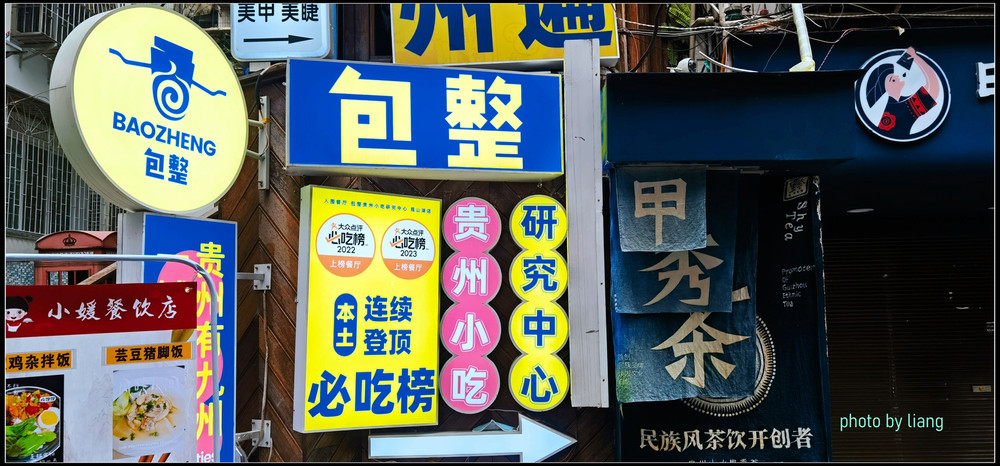 经人介绍,说贵阳市甲秀楼前面,有一个展示贵州著名小吃的饭店“包整”,包整就是“包你吃遍整个贵州”的意思,口气还真不小,于是我们决定前去看看。