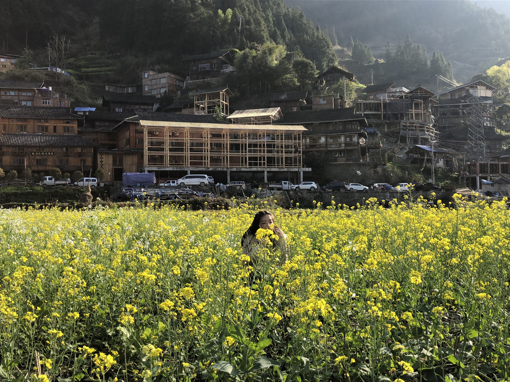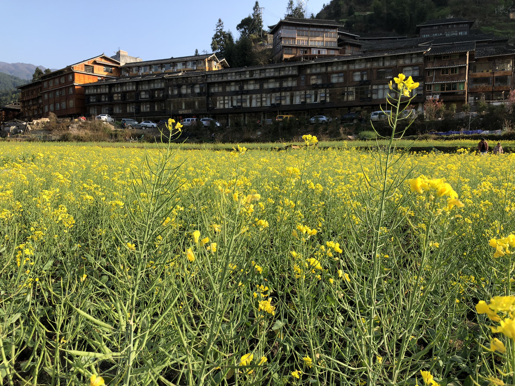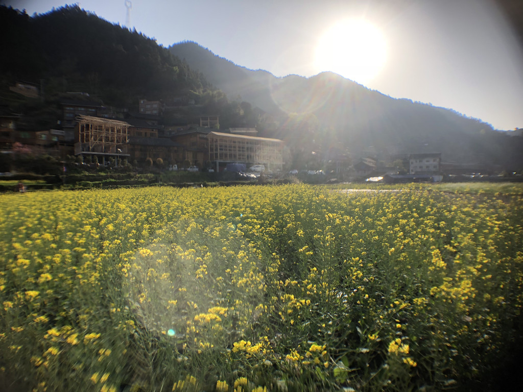 边走边吃,边欣赏美景,继续往前就到了风雨桥和油菜花田,赏心悦目!
