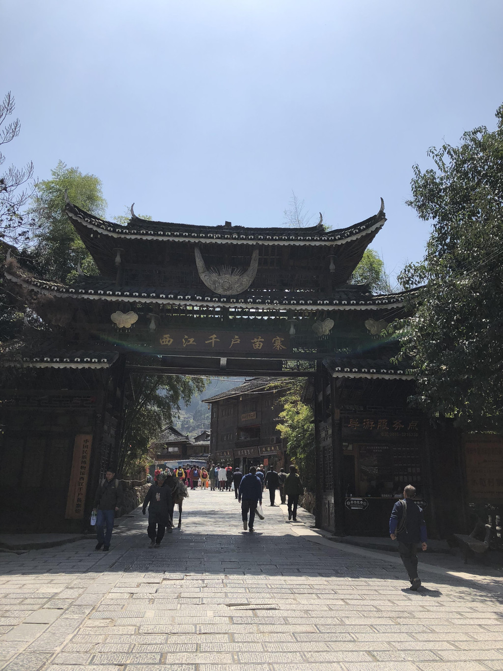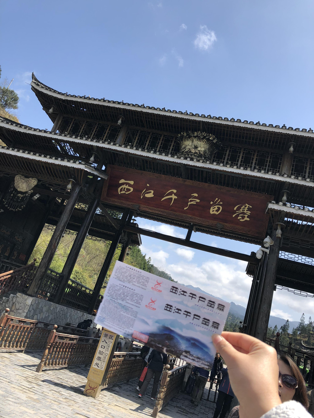 12点半左右到达苗寨正门(即北门)的首道大门,我们在携程上提前一天购票有优惠【温馨贴士:携程上提前一天购票,门票加观光车票共110元。观光车能坐四次,是景区首道大门与苗寨真正大门往返和苗寨到观景台往返】。取完票就正式开始苗寨之旅了。苗寨一行是四个人,前一天在荔波小七孔碰上两个广东的姐姐一起还比较聊的来,今天前往苗寨又碰到了一起,就干脆一起游玩了,嘻嘻!