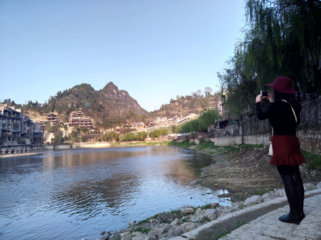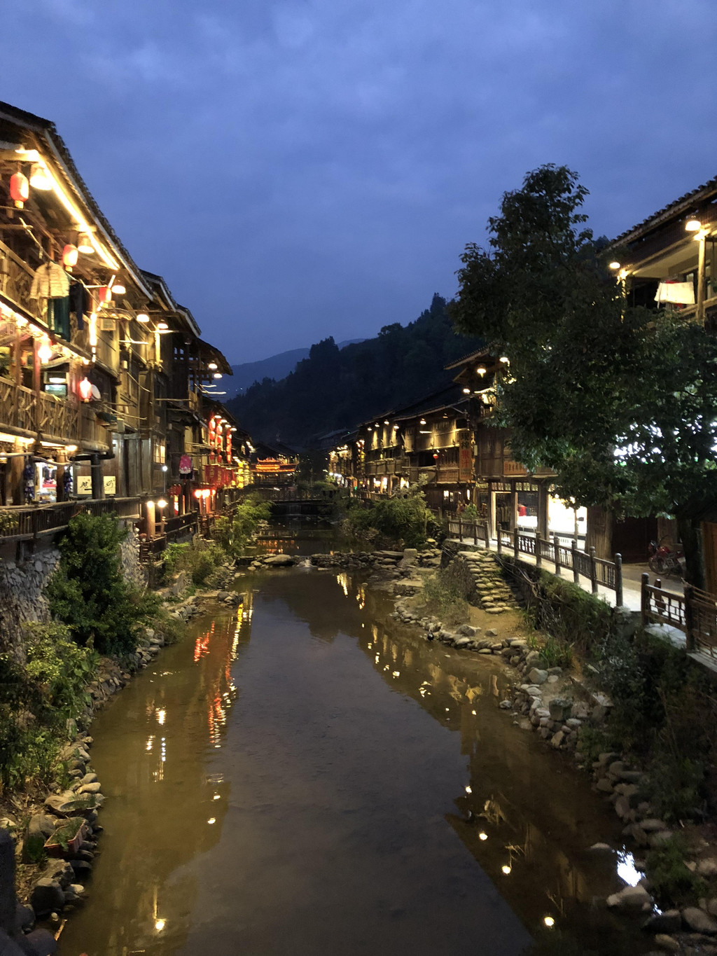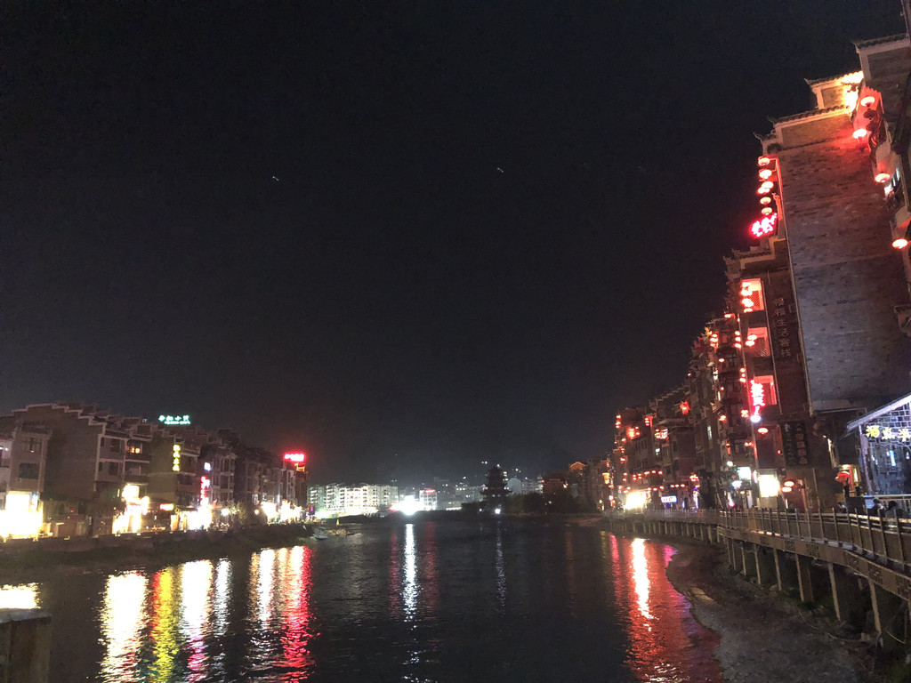 放下行李之后,就外出觅食啦,客栈后门直通舞阳河边,河边一到晚上很热闹,有几家清酒吧还有很多特色餐馆,基本就是以酸汤鱼为主。我们就沿着舞阳河一路走一路拍照!
