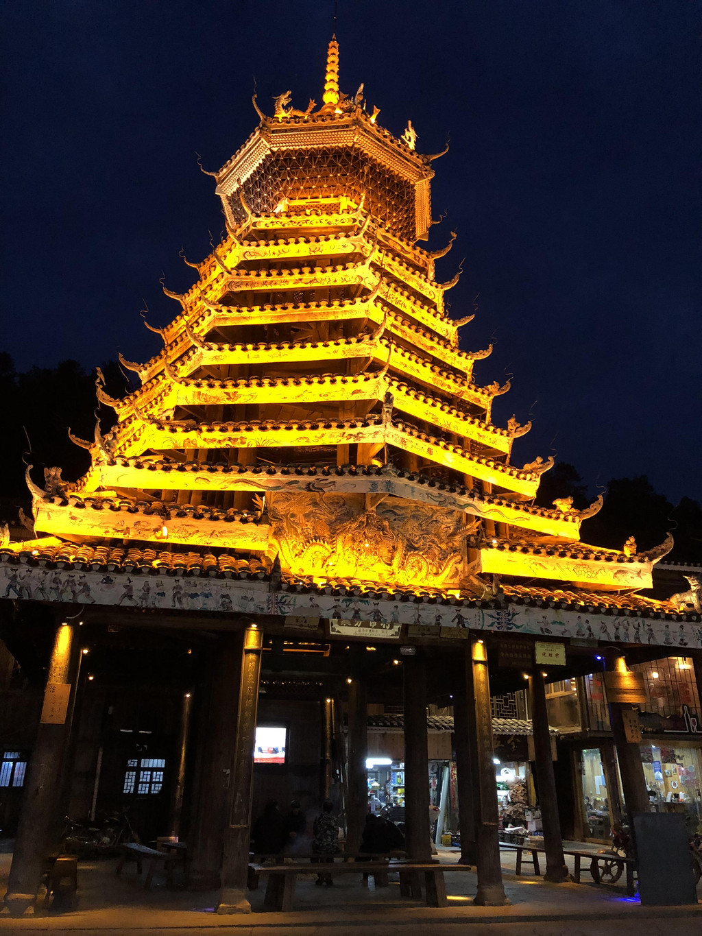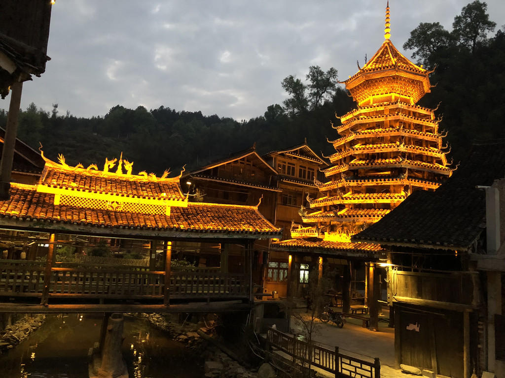 在寨子里溜达了一小会儿,七点多天渐渐黑了,夜幕下的侗寨是最让我心动的,真不是一个美字就能形容的了!