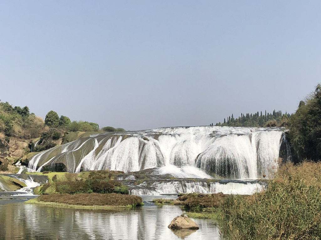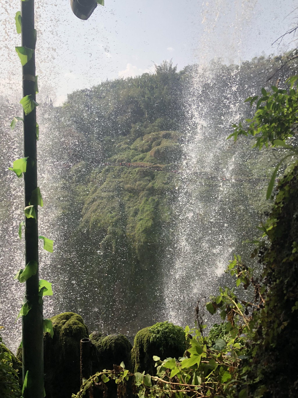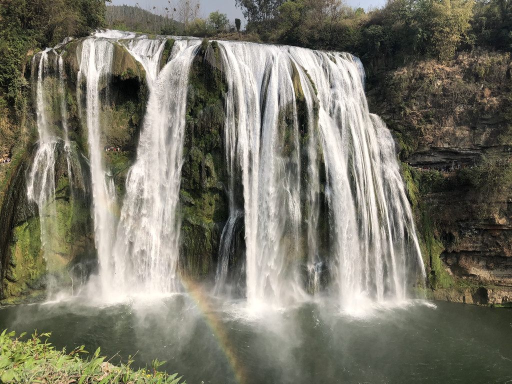 大瀑布的人是真的很多,拍照要靠挤。景区是单向游览,顺着人流向前走就会走到水帘洞,离瀑布越近越发现原来有瀑布的地方会有一道彩虹。
