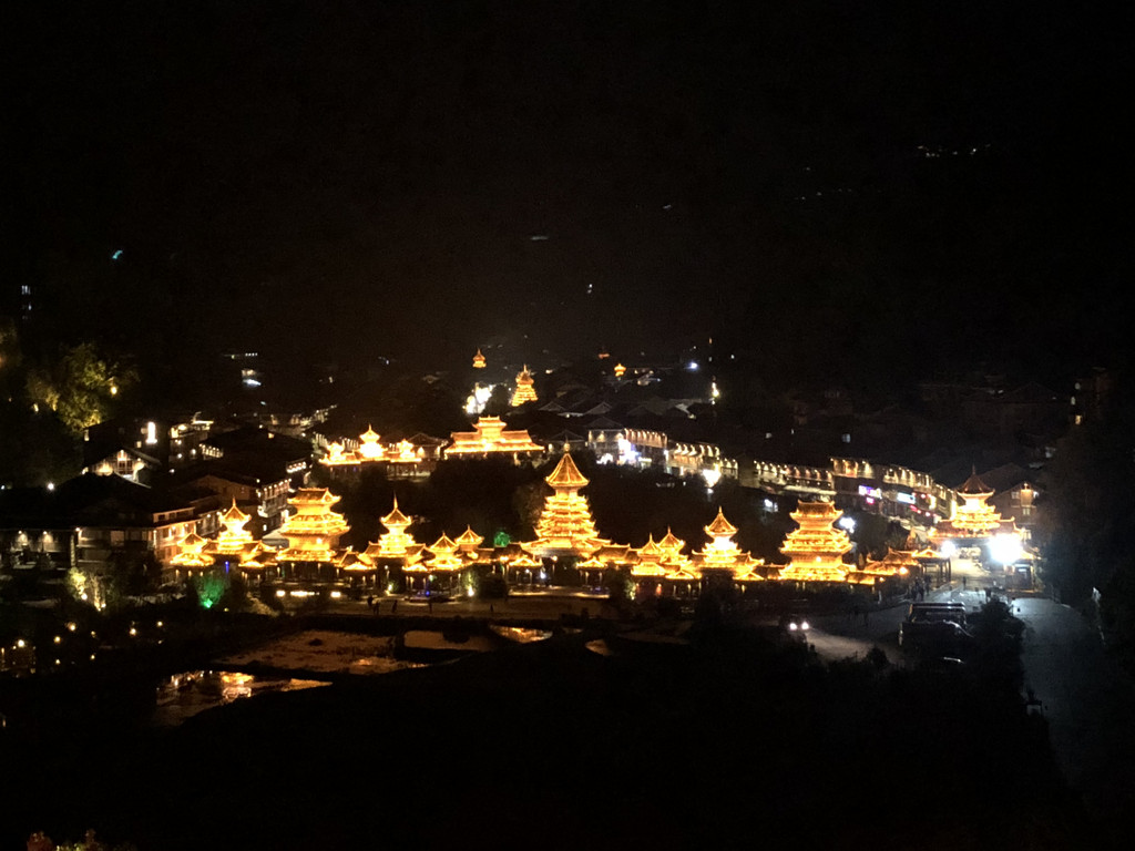 本来想回客栈休息的了,但是又觉得如果没有去观景台看一下肇兴夜景全景又会很遗憾,既然来都来了,就不能给自己留下遗憾,于是我们俩就走去观景台看夜景啦!