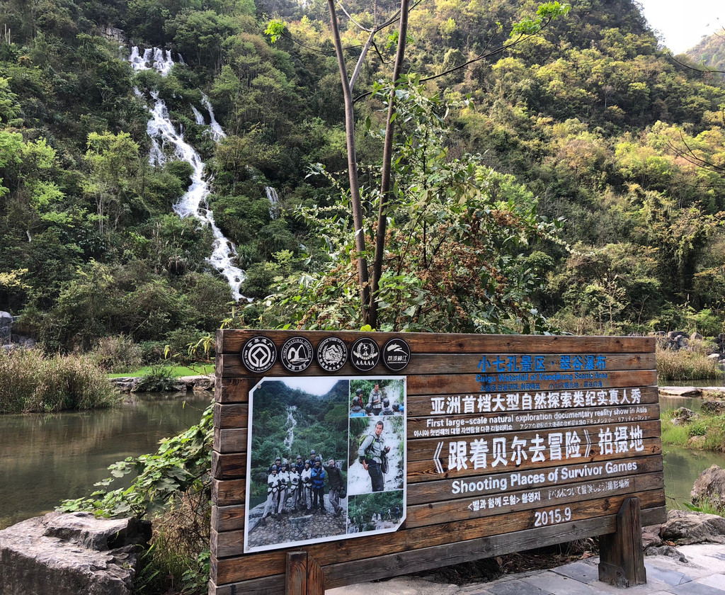 走到水上森林的出口便是观光车乘坐点,下一个点是《跟着贝尔去旅行》的其中一个拍摄点—翡翠瀑布。
