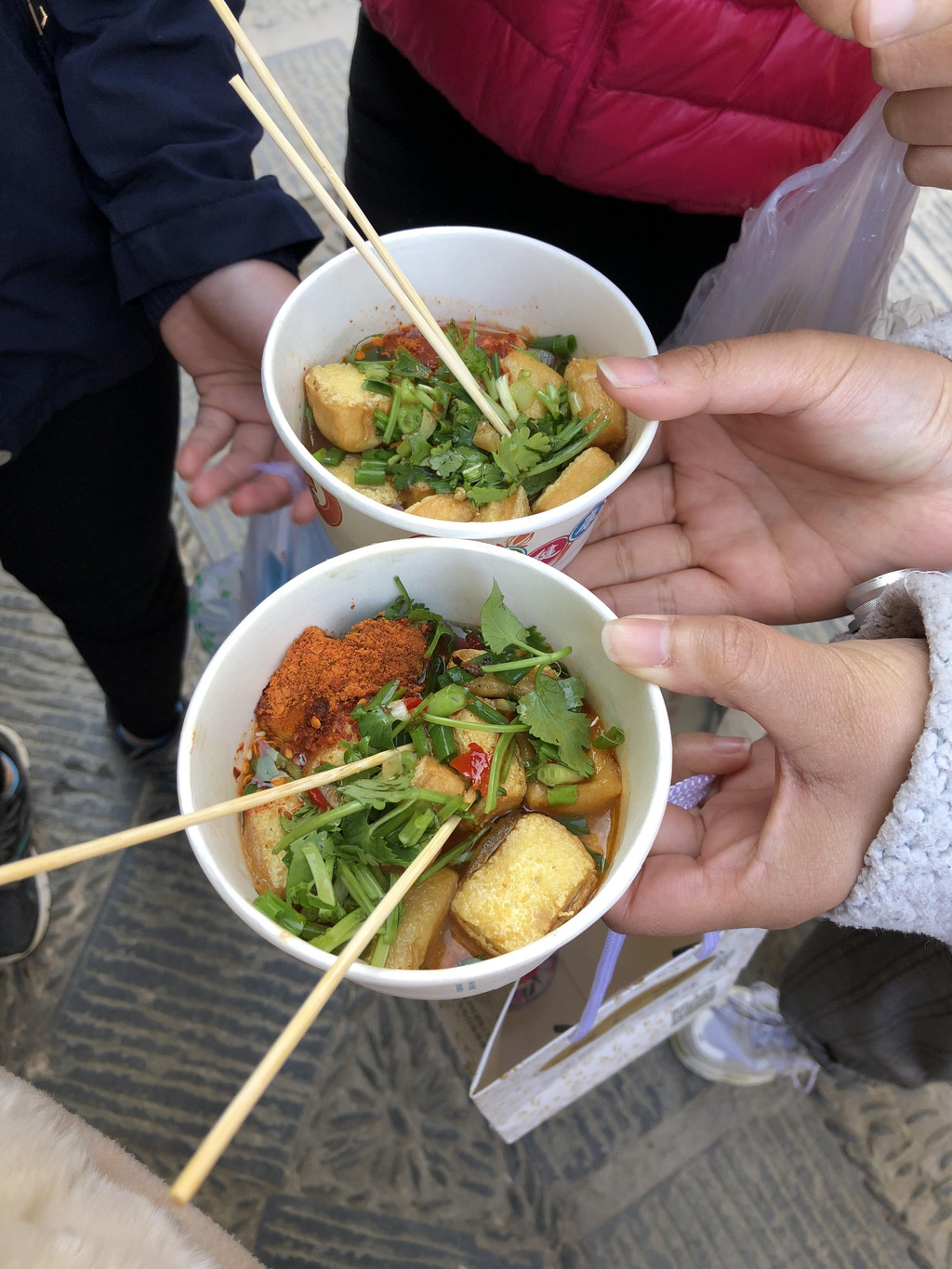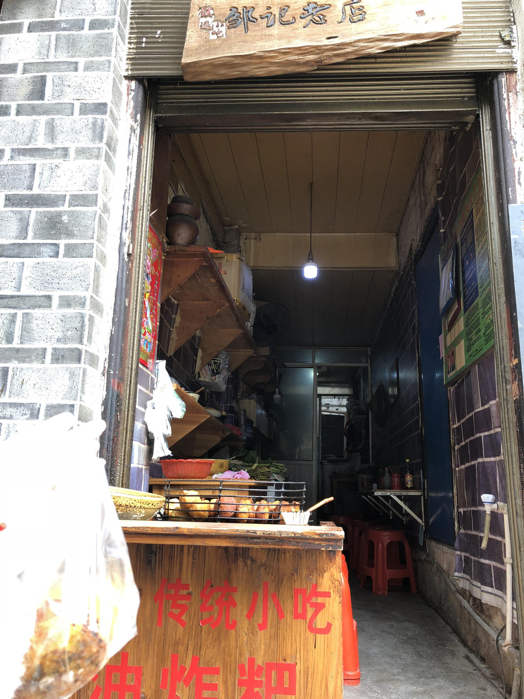 从石屏山下来我们就直接选择祝圣桥这边了,这样比较省时间,下山路途陡一点也还好,不会太累。十一点多下来之后,就决定先去吃个饭然后再退房去火车站。路上首先是看到了非常有名的邹记油炸粑,买了一个油炸粑一个糯米饭,一共4元钱,当做零食,刚出锅热乎乎的,都是有一点辣辣的里面有馅,非常合我的口味!