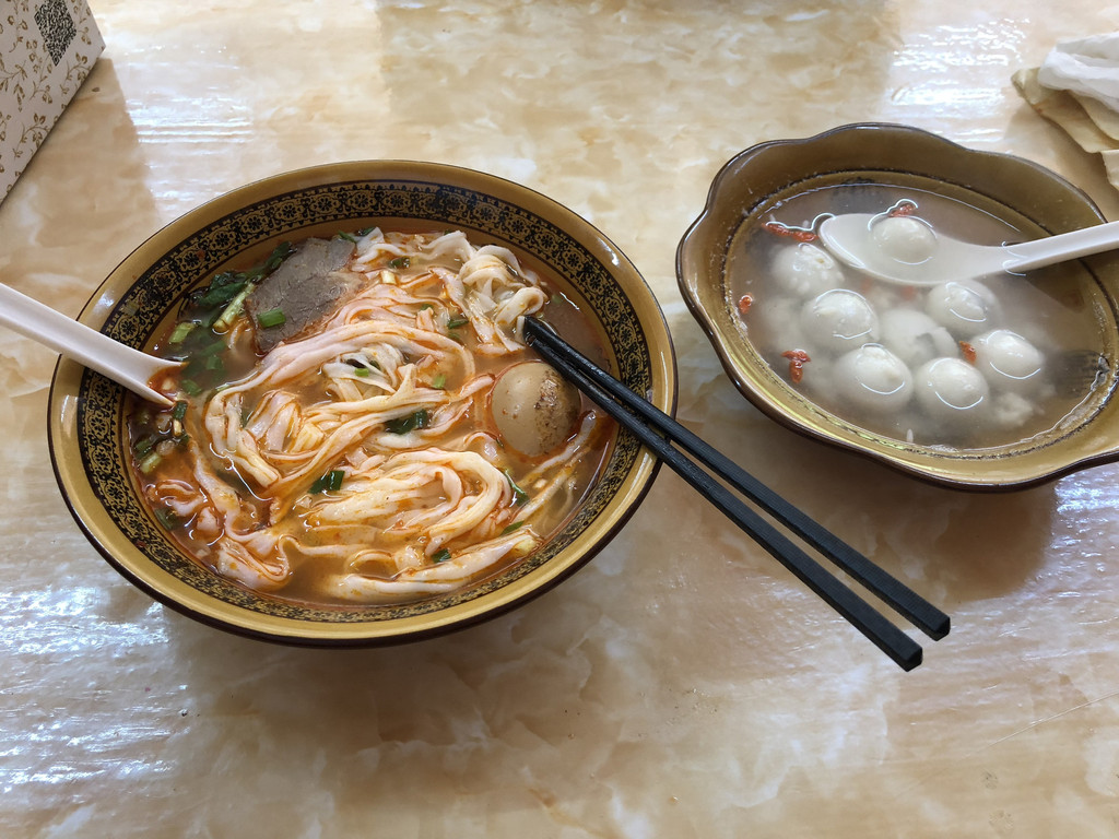 今天就要从侗寨赶往镇远古镇了,前一天在黎平县汽车站问了一下,黎平县汽车站每天下午两点有一趟直达镇远的大巴车,车费90元一人,所以今天也是睡到自然醒,十点多钟出门吃了个早餐。牛肉粉和甜酒汤圆,一共22元,非常好吃!