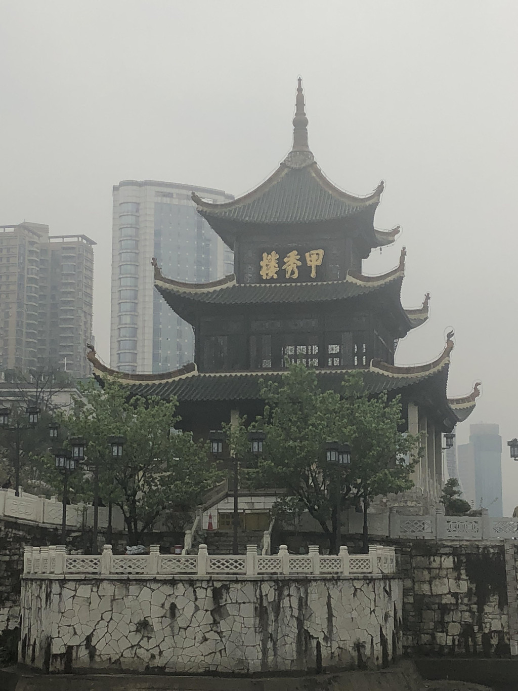 本次旅行的最后一天,在贵阳这座比较慢生活的城市享受了一次睡到自然醒,不到九点我们两个人起床收拾一下,准备前往本次旅行的最后一个景点,贵阳标志性建筑——甲秀楼。出来在巷子里的早餐铺要了份脆哨粉当做早餐,主要是想尝一下贵阳特色脆哨。吃过之后便从客栈坐车三四站的样子就到了甲秀楼,因为甲秀楼也在市中心所以还是很方便的。无奈我们可能淡季来,所以甲秀楼也在整修,哎,不能登上甲秀楼了,只能在外边观赏啦。