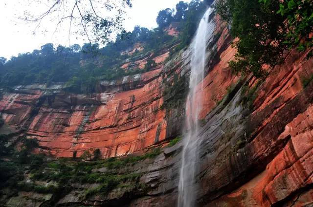 佛光岩所处位置出露地层全是侏罗纪、白垩纪河湖相红色沉积岩,大地山崖呈现出红艳艳的赤红色彩,为“世界丹霞之冠”。