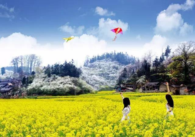 “金海雪山”是一个形容词,每年春天,山上盛开着白色的花朵,坝子里油菜花盛放,金色白色相交辉映,自成一道“金海雪山”的好风景。