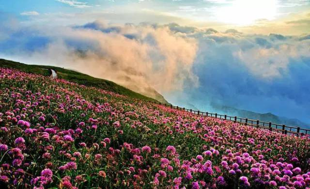 韭菜坪为贵州最高峰,每年9月初韭菜花盛开的季节,满山遍野都是韭菜花,犹如波浪般一浪跟着一浪随风而动,好似一片花的海洋。